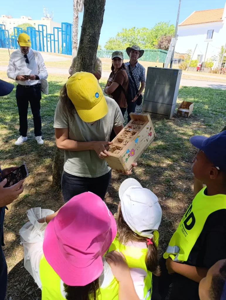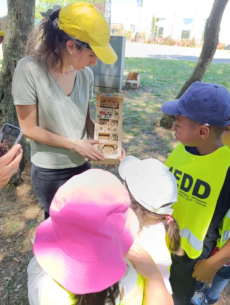 Durante a atividade, os alunos foram sensibilizados para a importância da biodiversidade e dos ecossistemas urbanos. Instalaram-se caixas-ninho e hotéis para insetos, aprendendo sobre a sua função e impacto positivo no ambiente. Além disso, foi criada e regada uma minifloresta, reforçando o compromisso com a recuperação e proteção da natureza em contexto urbano.